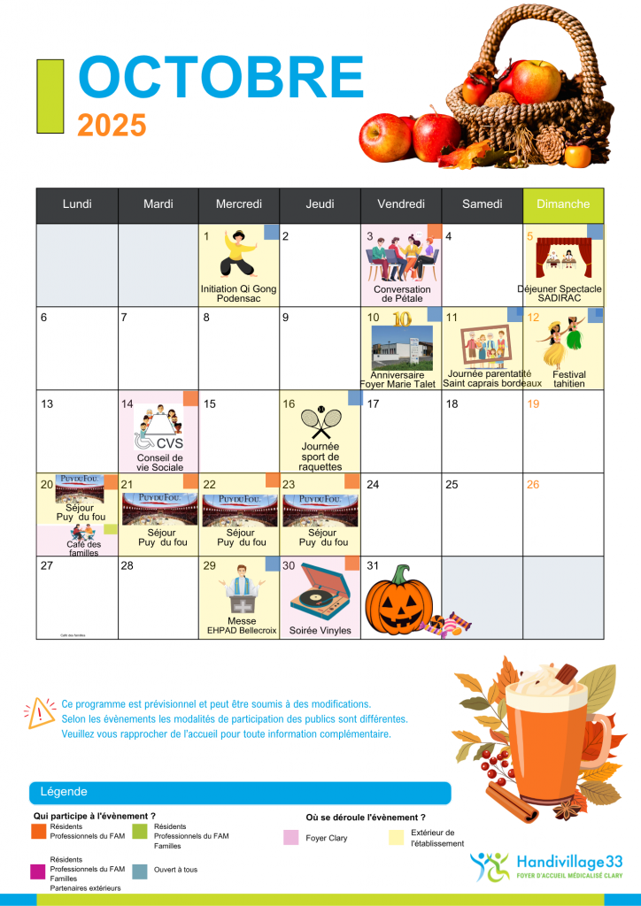 Le mois de novembre arrive avec ses couleurs d’automne et ses journées plus fraîches. Au FAM Clary, on garde le rythme et surtout l’envie de partager ensemble Ce mois-ci, place […]